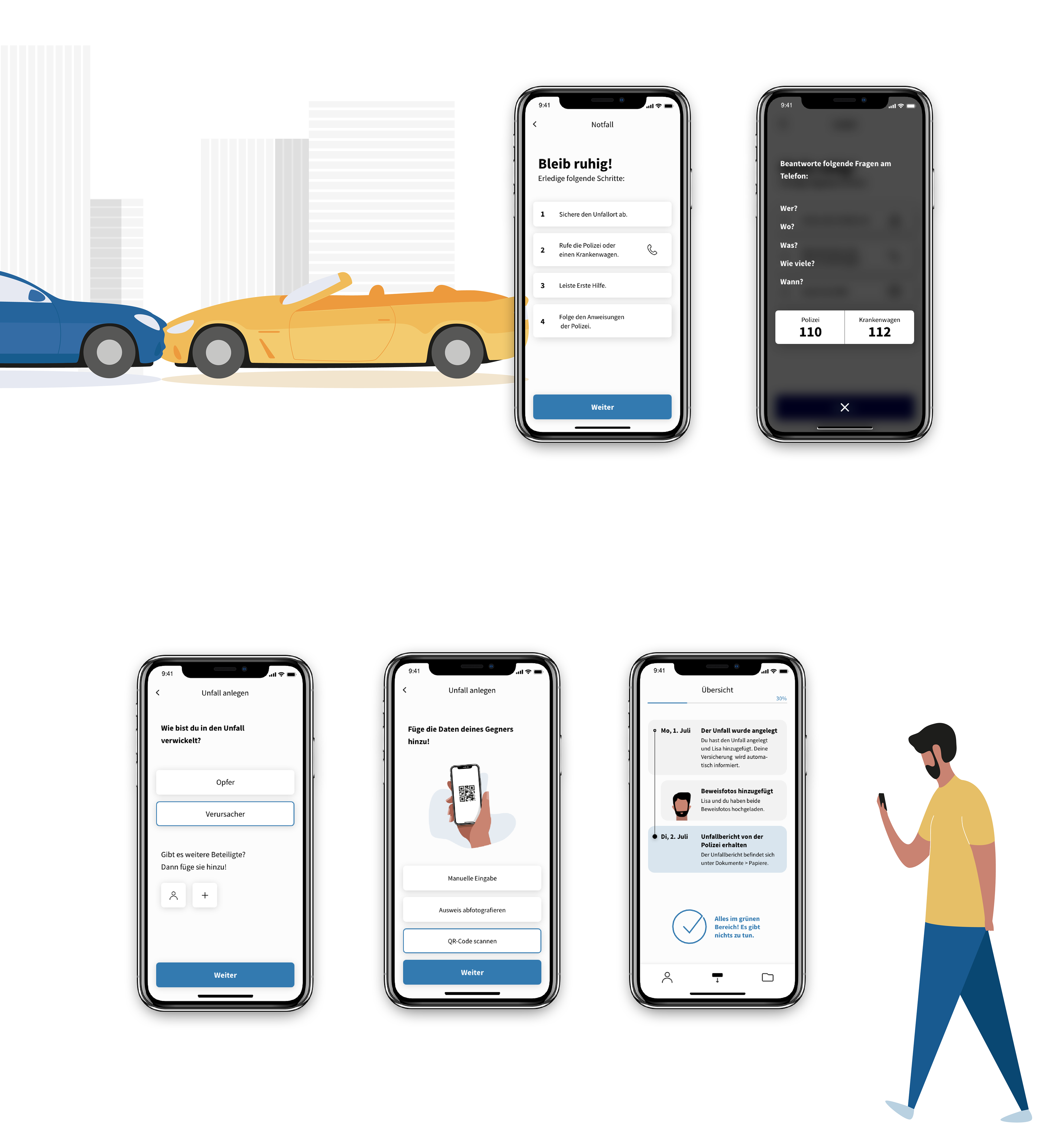 2 636 190 traffic accidents were recorded by the police in 2018. But what should you do in the event of an accident? People do not know how to behave correctly and what to do afterwards. The Allianz Support application, as a service from Germany's largest insurance company, accompanies you during and after an accident. Dangerous situations and later complications can be avoided.